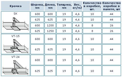 Предлагаемый ассортимент подвесных звукоизолирующих потолков: