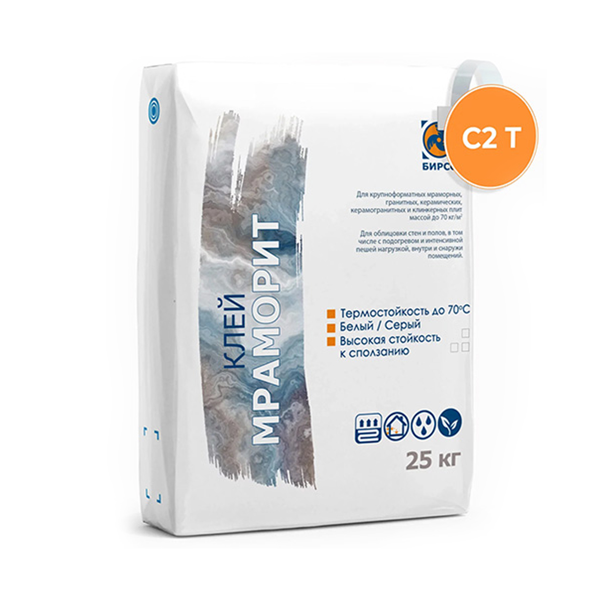 - Для какой плитки подходит этот клей? БИРСС Мраморит рекомендован для материалов с водопоглощением 3–10% и размером до 60×60 см: керамогранит, натуральный и искусственный камень, мрамор, гранит, клинкер, керамическая плитка и мозаика.