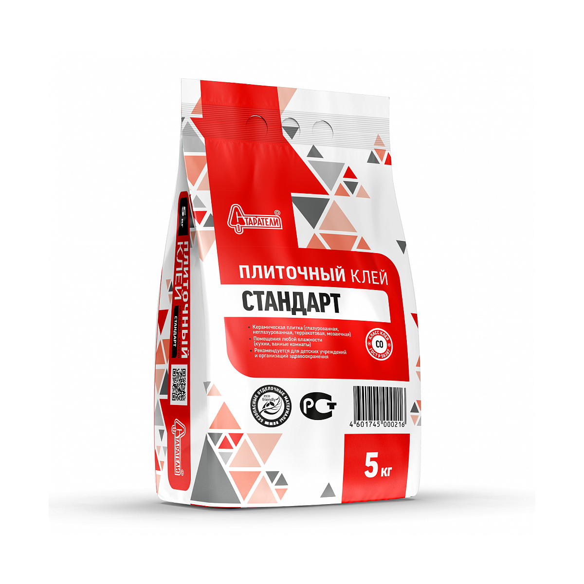- Для каких материалов подходит этот клей? Клей «Стандарт» предназначен для всех видов керамической плитки с нормальным водопоглощением: глазурованной, неглазурованной, терракотовой, мозаичной и других, размером до 3600 см².