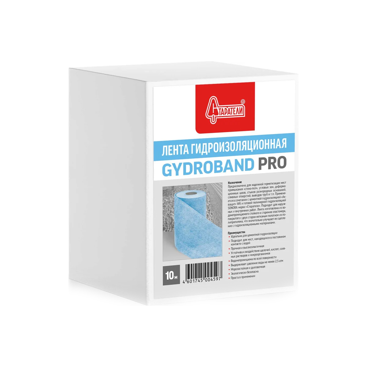 Лента гидроизоляционная «GYDROBAND PRO» от бренда «Старатели» — это прочный и высокоэластичный материал на полимерной основе, предназначенный для надёжной герметизации критических узлов в системах гидроизоляции. Лента выдерживает давление воды не менее 2,5 атм, устойчива к воздействию щелочей, кислот, соляных растворов и микроорганизмов. Водонепроницаема по всей поверхности, идеально сочетается с цементной гидроизоляцией «Акващит» W6 и полимерной «SONORA». Сохраняет свойства в широком диапазоне температур от -30 до +90°С.