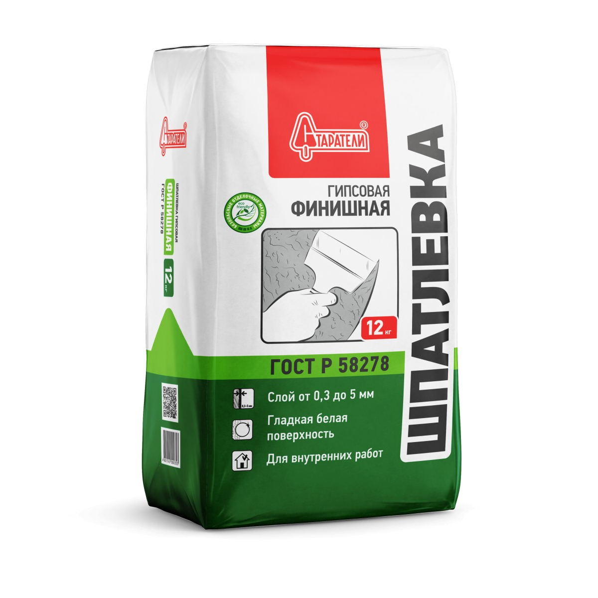 Шпатлевка гипсовая «Финишная» от бренда «Старатели» — это сухая смесь на основе гипса, соответствующая ГОСТ Р 58278. Материал обеспечивает гладкую белую поверхность, легкое сведение слоев и высокую пластичность готового раствора. Обладает безусадочностью и стойкостью к трещинообразованию, идеально подходит для финишного выравнивания потолков и стен внутри помещений с нормальным уровнем влажности.